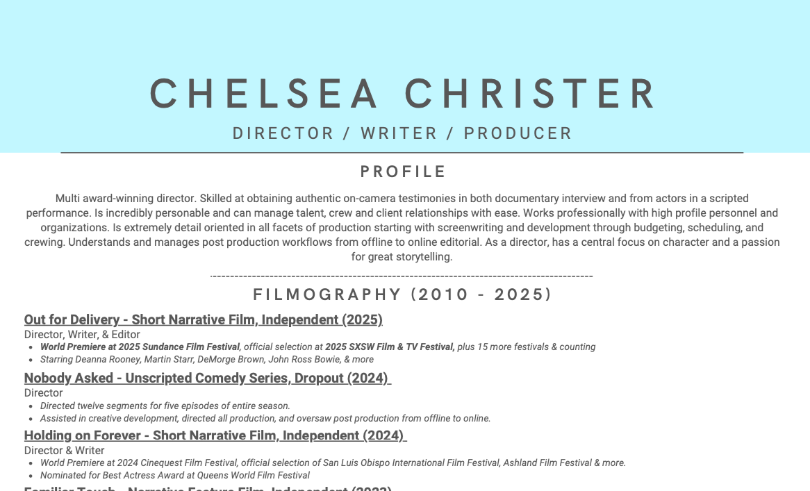 Narrative Films Television Bleeding Audio - Feature Documentary Commercial & Branded Music Videos Click for a full credit list